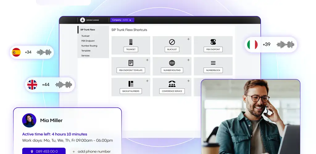 Verbinden Sie sich mühelos in ganz Europa und darüber hinaus mit unserem zuverlässigen SIP-Trunk, der auf die Bedürfnisse Ihres Unternehmens zugeschnitten ist.