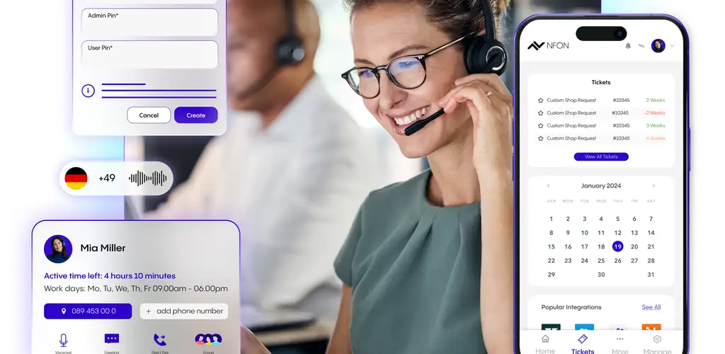 Passt sich bestehender Infrastruktur an. Mit Microsoft Teams, NFON Contact Center Hub und Genesys Cloud Anbindung für noch effizientere und reibungslose Kommunikation.