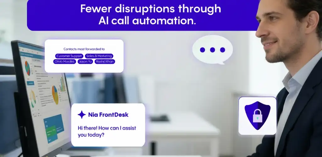 NIA FrontDesk answers calls and filters enquiries before they reach specialists.